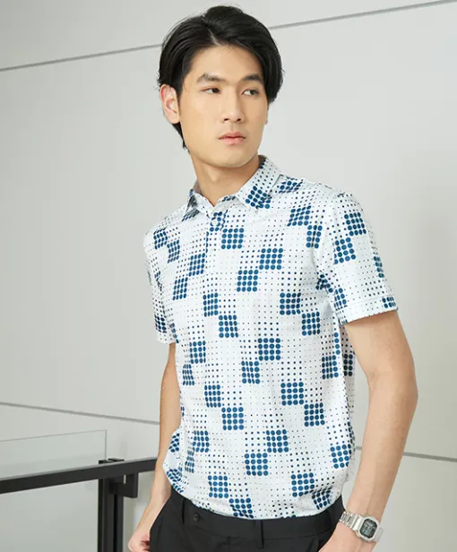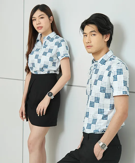 A smart, stylish printed shirt for tech or innovation-driven companies looking to stand out with unique design elements.