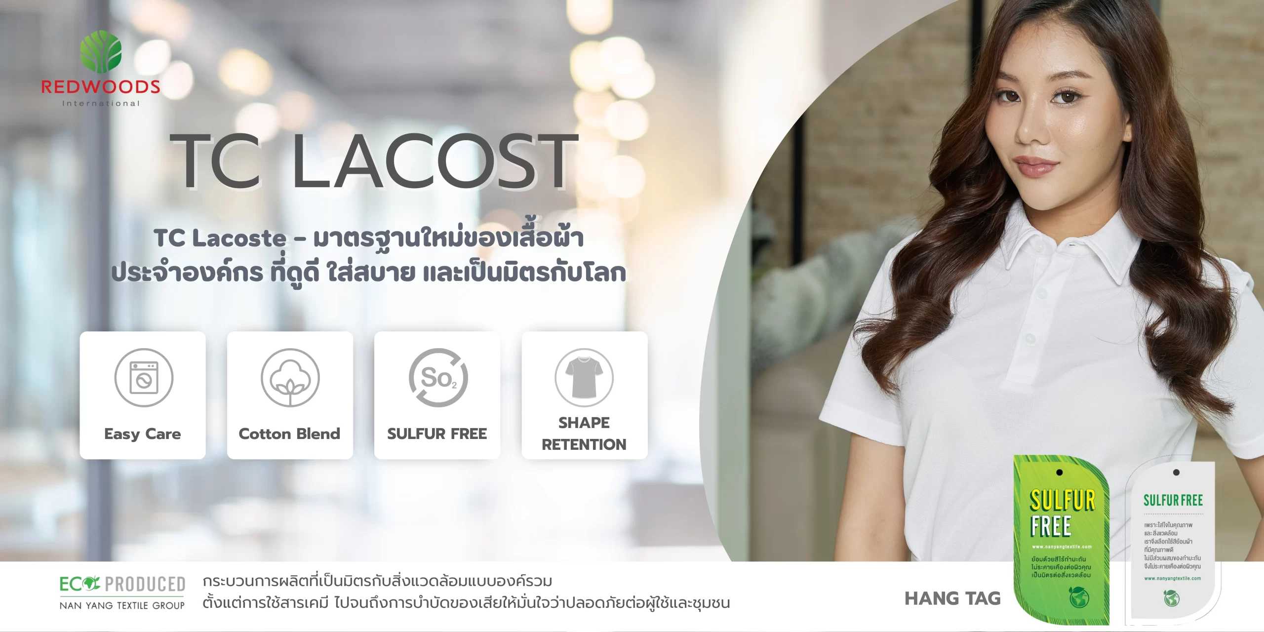 ในฐานะผู้ผลิตที่ใส่ใจสิ่งแวดล้อม TC Lacoste ผ่านกระบวนการ Eco-Produce ที่ลดการใช้สารเคมีอันตราย เพื่อเสื้อผ้าที่ดีต่อผู้สวมใส่และโลกใบนี้
